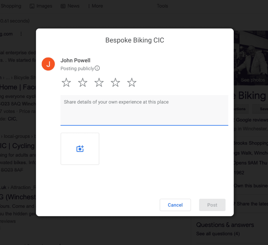 As an example follow this review link to our local bike hire store here in Winchester, UK. When you click on this link you should see the review page.